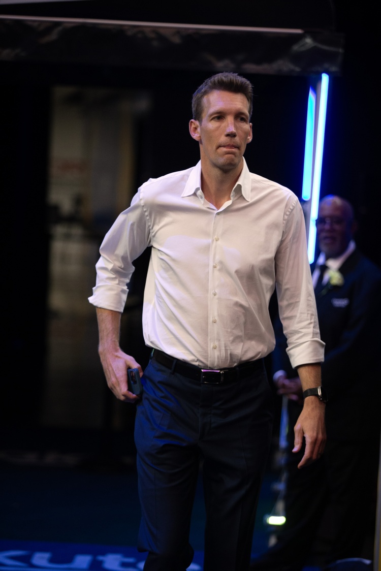 主持人:“你现在正处在勇士队发展的一个特殊时期,在此期间担任球队的总经理,这无疑是极具挑战的。鲍勃·迈尔斯也曾半开玩笑半认真地说过,他不想成为需要做出这些艰难决策的总经理。而你已经做出了一些重要决策,未来还会有更多的决策需要你做出。你有没有感受到这份压力?你是不是也意识到,球队正经历着重大的变革?你当初接手这份工作时就知道会面临这些,但你觉得自己的心态是不是适合应对这些已经发生和未来即将发生的重大挑战?”