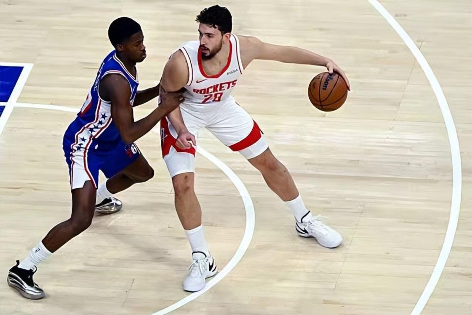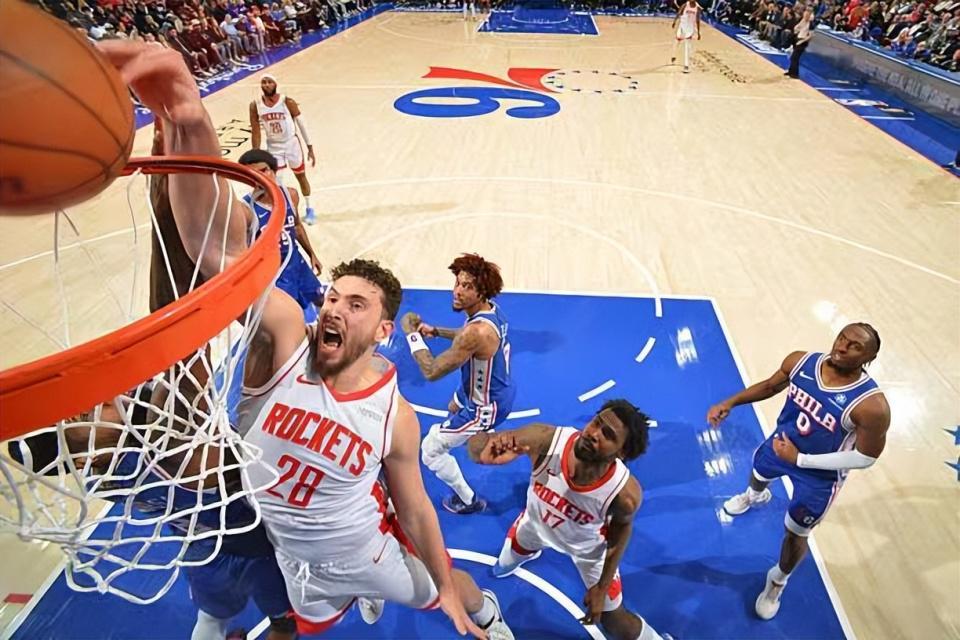 本场比赛中,火箭的先发中锋阿尔佩伦-申京(Alperen Sengun)的表现实在是很不理想。申京全场出场37分33秒,投篮15中5,三分线外2中1,罚球7中2,得到了13分8篮板7助攻2抢断2盖帽的准三双数据,还有1次失误和2次犯规,正负值-18。申京在进攻端的效率实在是惨不忍睹,他在对手内线完全不能够起到基本的支持,他的得分能力完全没有发挥出来,甚至他的罚球命中率也是令人非常失望的。申京在防守端的表现也是很不理想的水平,可以说是被乔尔-恩比德(Joel Embiid)各种打爆。申京的状态很不理想,但是到了比赛最后一节,他还是被球队留在了场上,这就显得令人非常无语了。如果申京和小贾巴里-史密斯(Jabari Smith Jr.)这两个表现一塌糊涂的球员没有留在场上,火箭可能就已经取得胜利了。